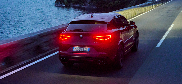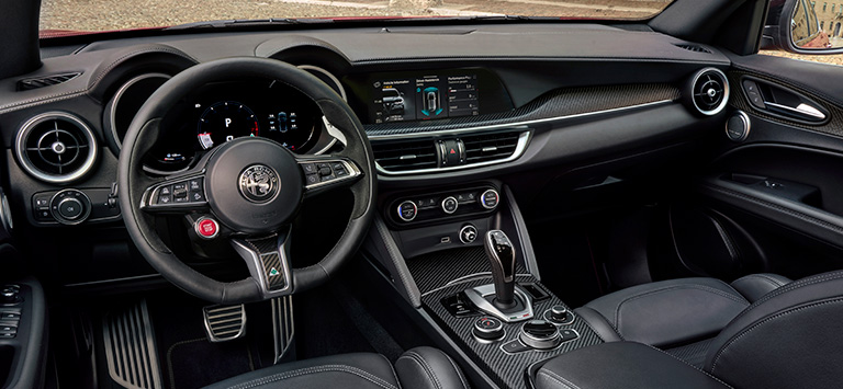 Витрата палива Stelvio Quadrifoglio Range (л/100 км): 11,8; викиди CO2 (г/км): 267. Показники затвердження типу визначені на основі комбінованого циклу WLTP, омологованого станом на 14.06.2023. Зазначені значення наведені для порівняння.